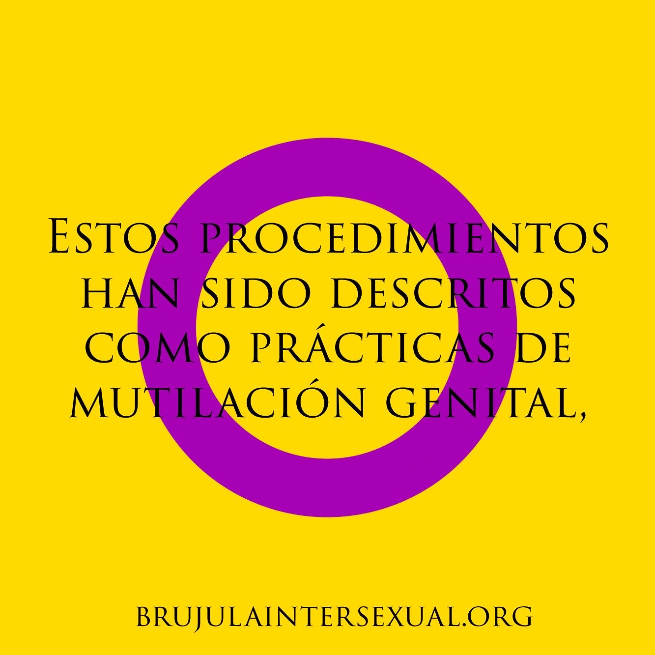 Estos procedimientos han sido descritos como prácticas de mutilación genital, y violan derechos humanos básicos como el derecho a la autodeterminación, integridad y autonomía corporal.