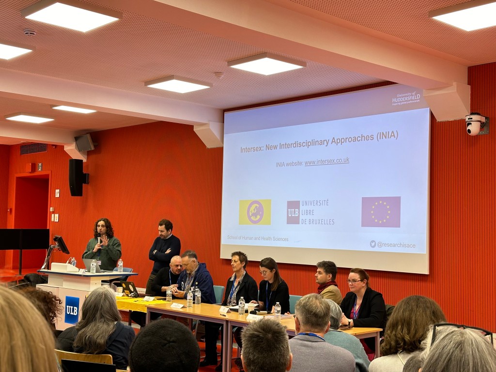 La conferencia Expanding Intersex Studies fue llevada a cabo del 31 de enero al 1 de febrero de 2024 en la Universidad Libre de Bruselas, Bélgica, y se llevó a cabo en el marco del cierre del proyecto Intersex New Interdisciplinary Approaches (INIA). La noche del 27 de enero, Laura Inter, Eva Alcántara, Mar Is y yo emprendimos el viaje hacia el país del Manneken Pis y arrivamos el 28 del mismo mes por la noche. Pasamos los siguientes dos días en el hotel, trabajando en los detalles finales y en la traducción de nuestra presentación. Radicamos en distintos estados de México y usualmente trabajamos en equipo de manera asíncrona y a distancia, por lo que ese pequeño periodo de trabajo colaborativo, sincrónico y en persona fue muy importante para nosotras y nos permitió un mejor intercambio de ideas, opiniones, saberes y aprendizajes.
