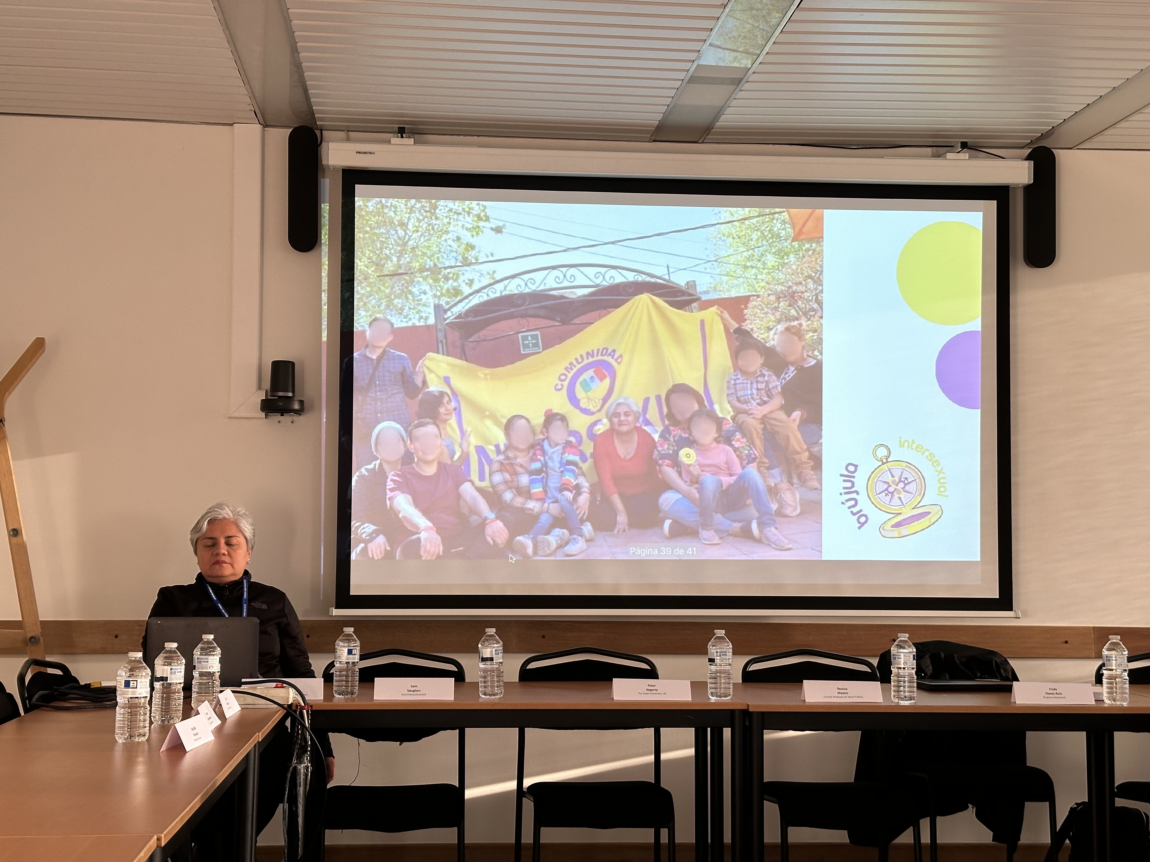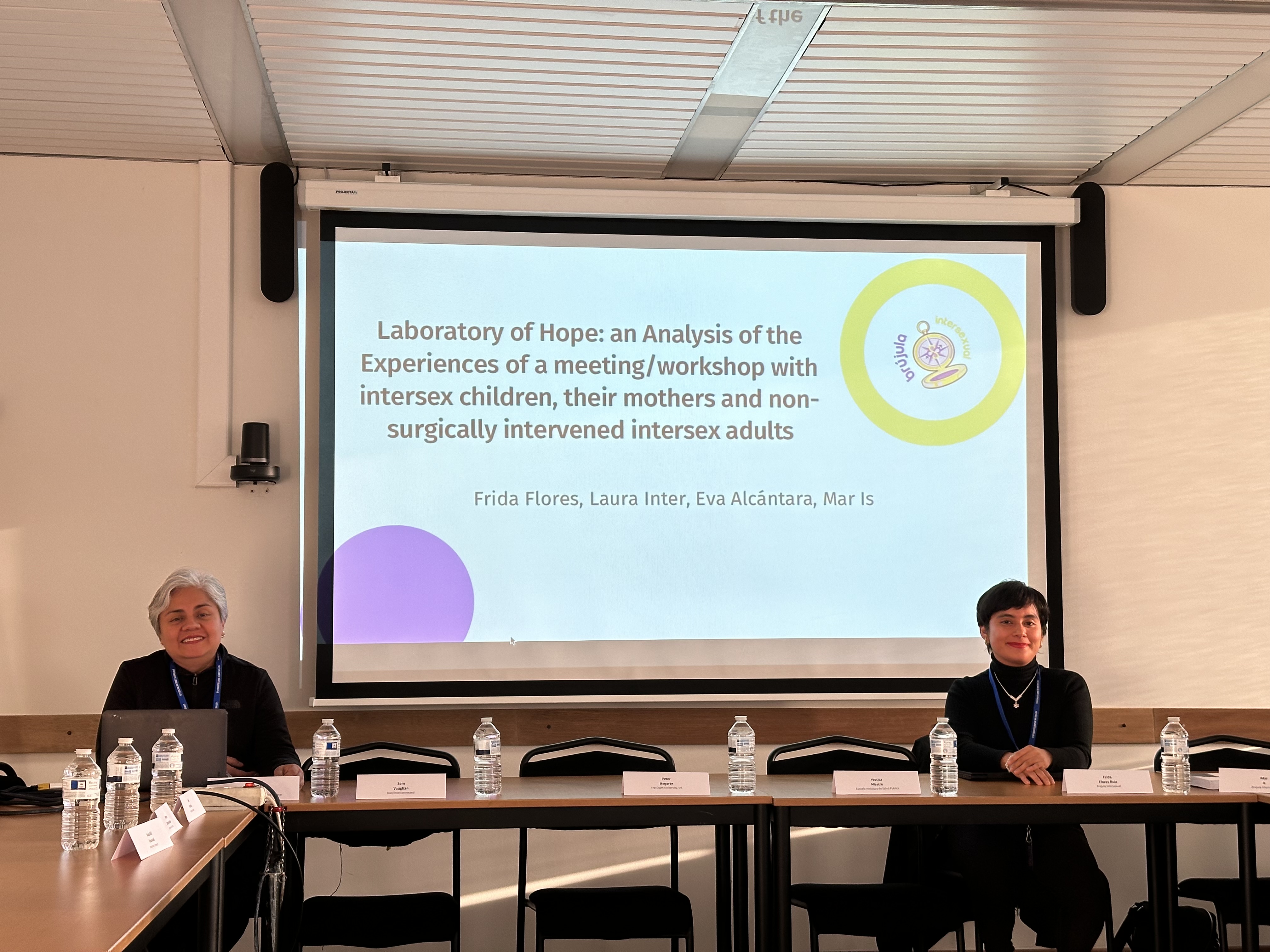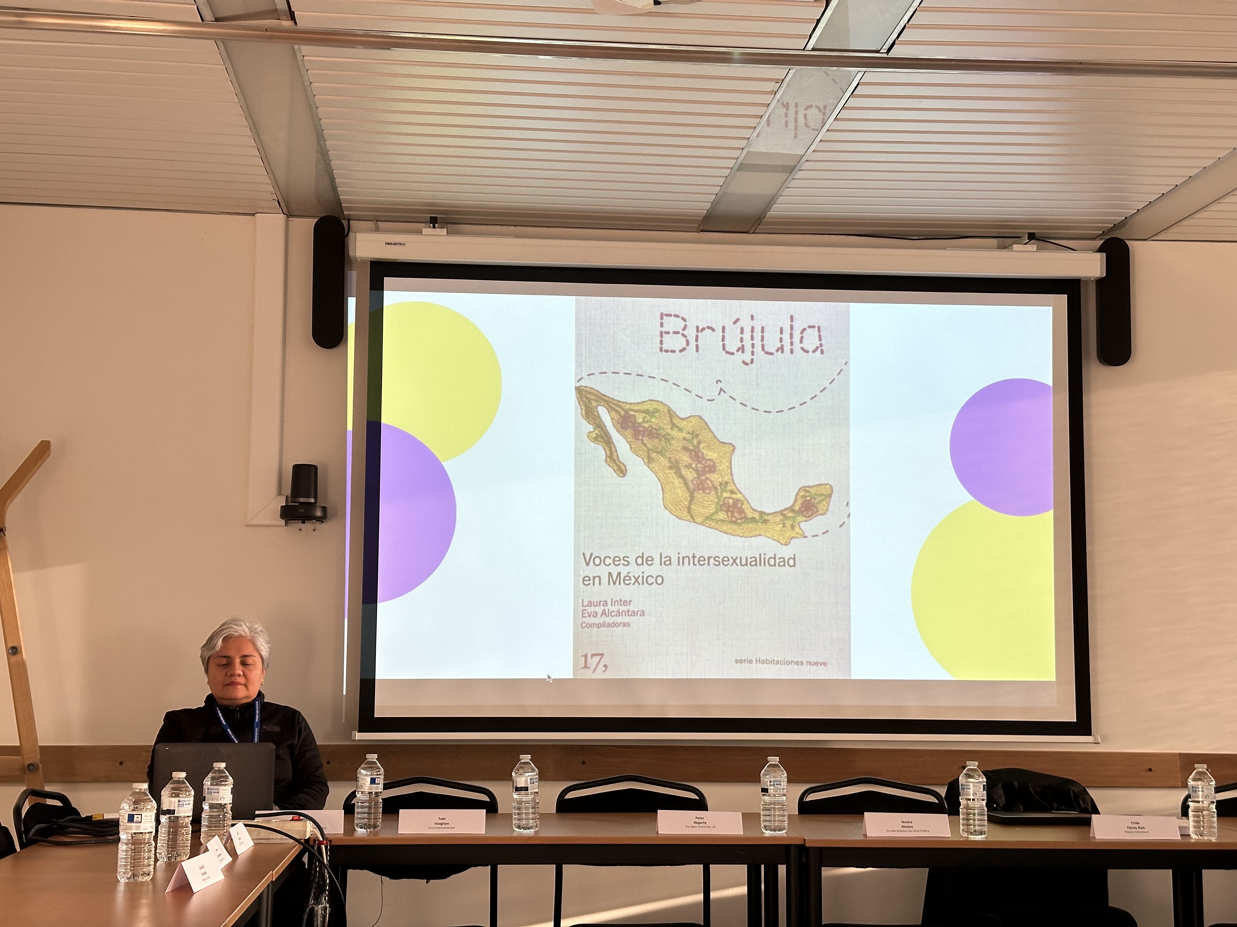 Nuestra ponencia se llevó a cabo en la primera sesión del día 1 de febrero como parte del panel Ética y métodos, en el cual también participaron Peter Hegarty, Sam Vaughan, Yessica Mestre e integrantes de Intersex Greece. Bajo el título Laboratorio de esperanza: un análisis de las experiencias de un encuentro/taller con infancias intersex, sus madres y personas intersex adultas, presentamos los resultados obtenidos mediante el primer taller de madres organizado por Brújula Intersexual en febrero de 2023. En ese taller participamos Laura Inter, Eva Alcántara, Mar Is y yo, quienes nos encargamos de preparar, construir y redactar la ponencia para participar en esta conferencia. Fue muy grato para nosotras ver que nuestro trabajo había generado interés entre las personas que asistieron, durante nuestra ponencia, la sala se llenó e incluso había personas de pie porque ya no había asientos disponibles. Al final de la misma, presentamos brevemente el libro Brújula. Voces de la intersexualidad en México.