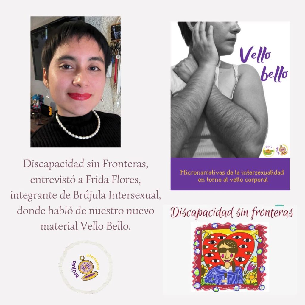 Discapacidad sin Fronteras, entrevistó a Frida Flores, integrante de Brújula Intersexual, donde habló sobre intersexualidad, derechos humanos, activismo intersexual, del trabajo que realizamos en Brújula Intersexual y de nuestro nuevo material «Vello Bello: Micronarrativas de la intersexualidad en torno al vello facial y corporal en mujeres«.