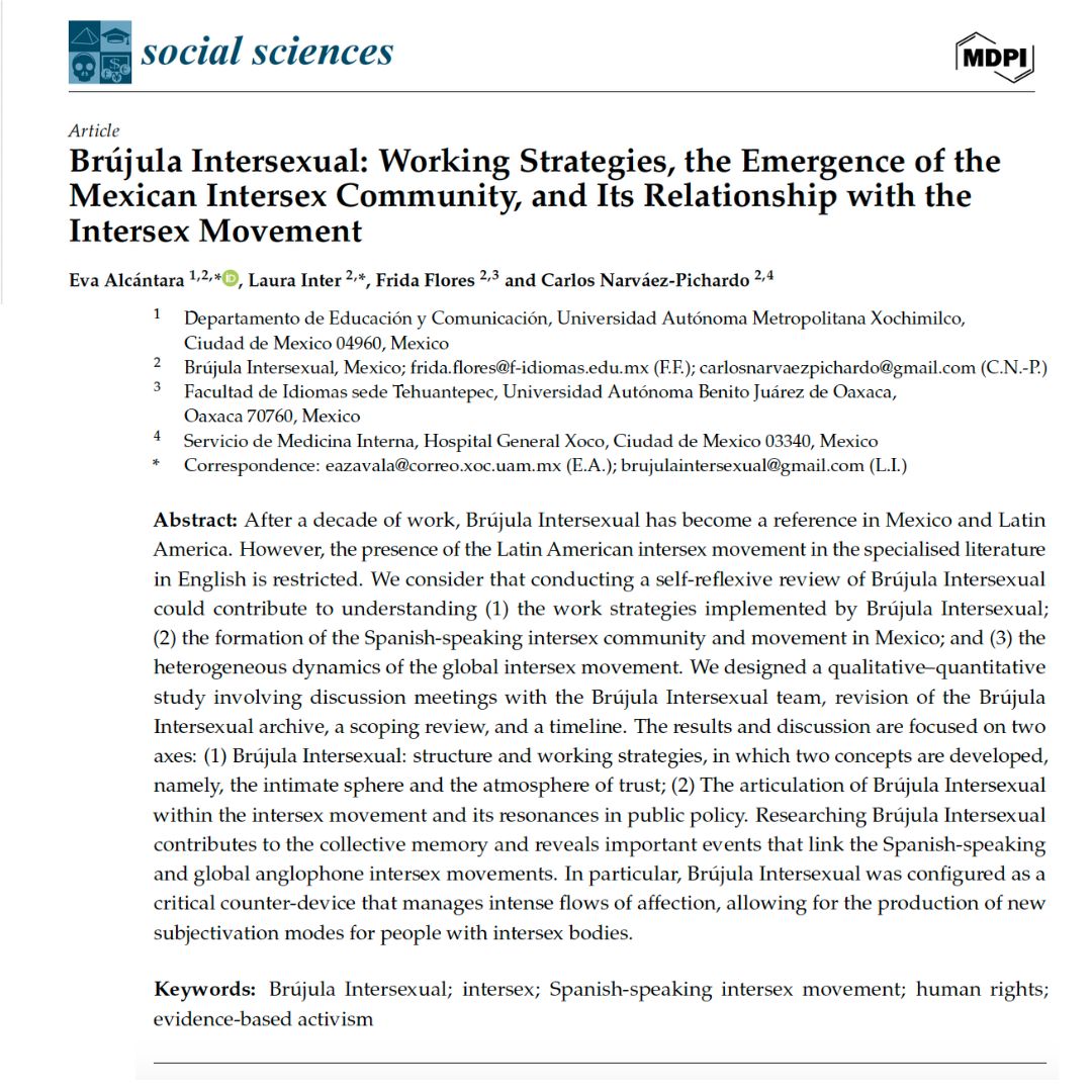 What is Brújula Intersexual? How does it work? How does its work relate to Mexican, regional, and global intersex activism? These questions are explored in the article titled «Brújula Intersexual: Working Strategies, the Emergence of the Mexican Intersex Community, and Its Relationship with the Intersex Movement.»