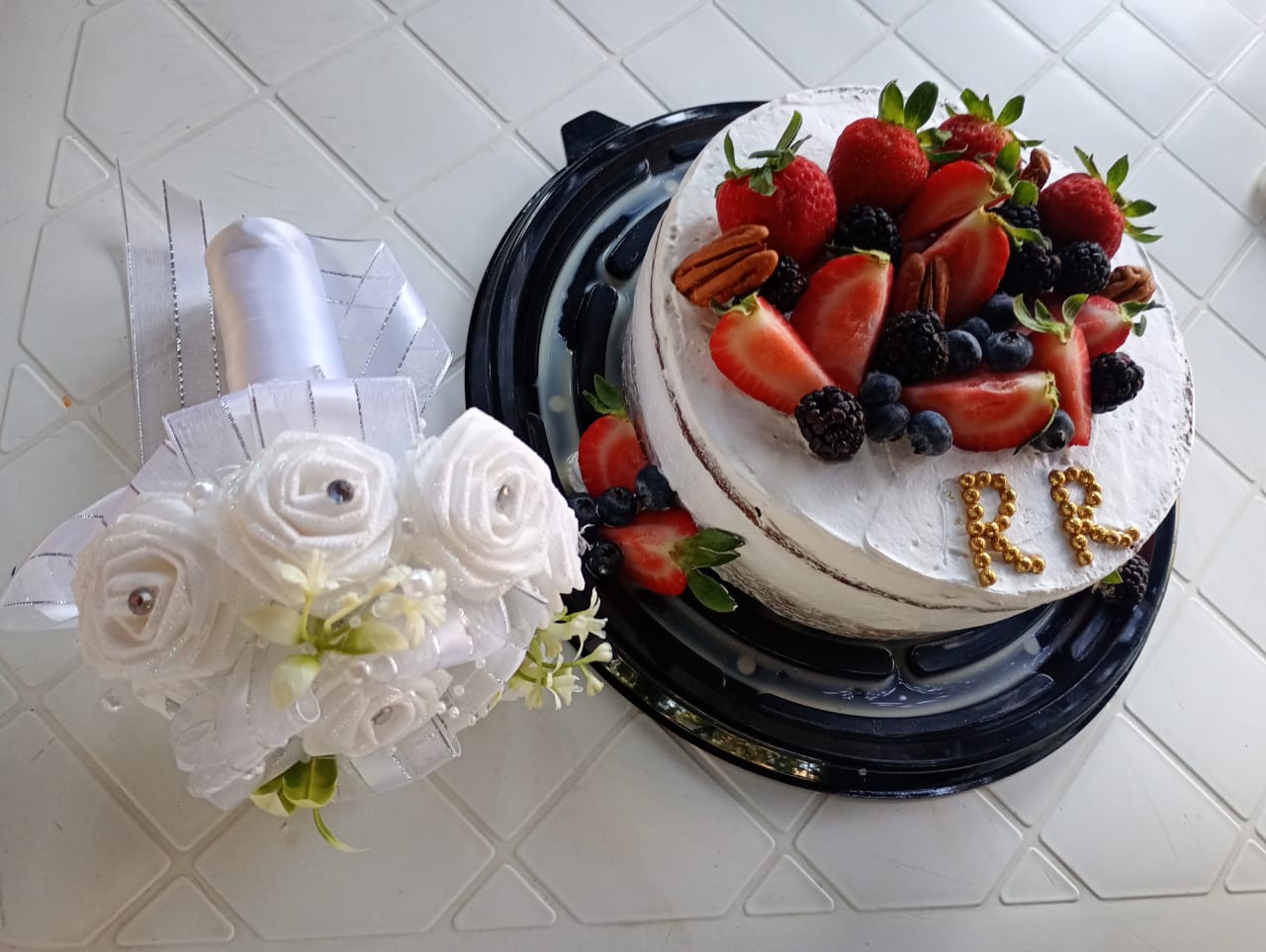 Para celebrar, un pastel con nuestras iniciales.